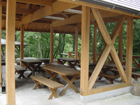 めいほうキャンプ場 中央部に位置するBBQ棟。